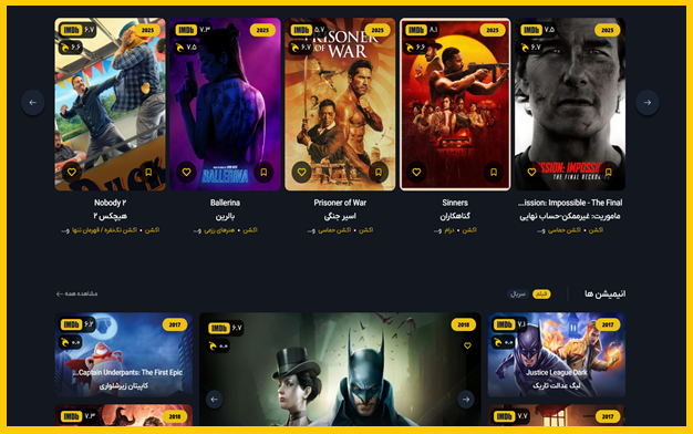 - دسترسی آسان: طراحی کاربرپسند و دستهبندیهای مشخص در سایت به کاربران این امکان را میدهد که به راحتی فیلمها و سریالهای مورد علاقه خود را پیدا کنند.